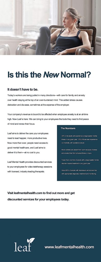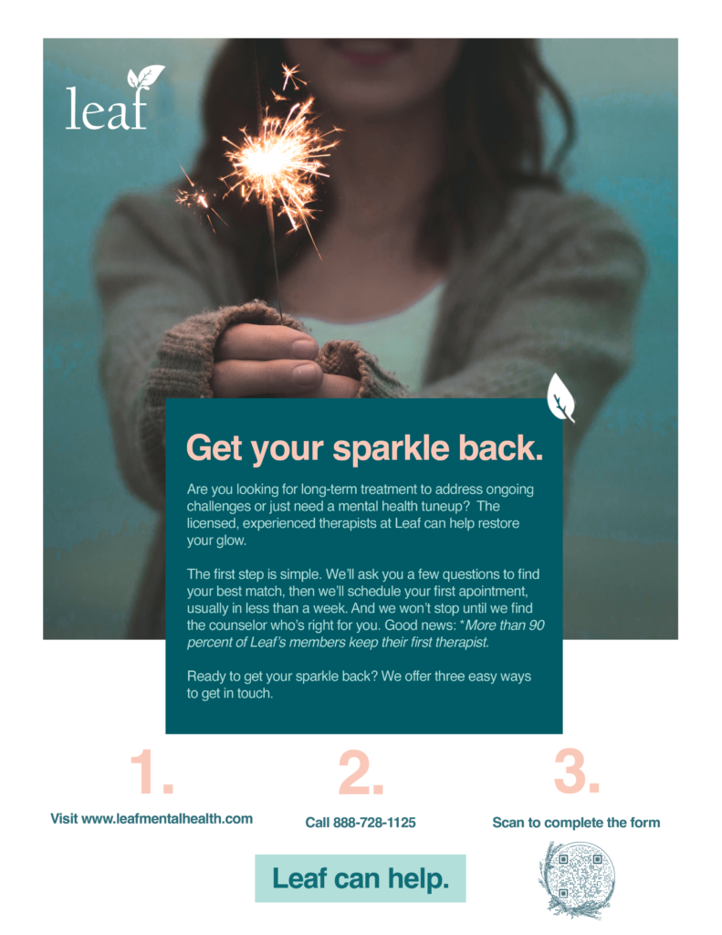 Leaf’s innovative service provides a turnkey solution for employers seeking effective mental health and wellness services for their staff. Our concierge process is simple, confidential, and effective.